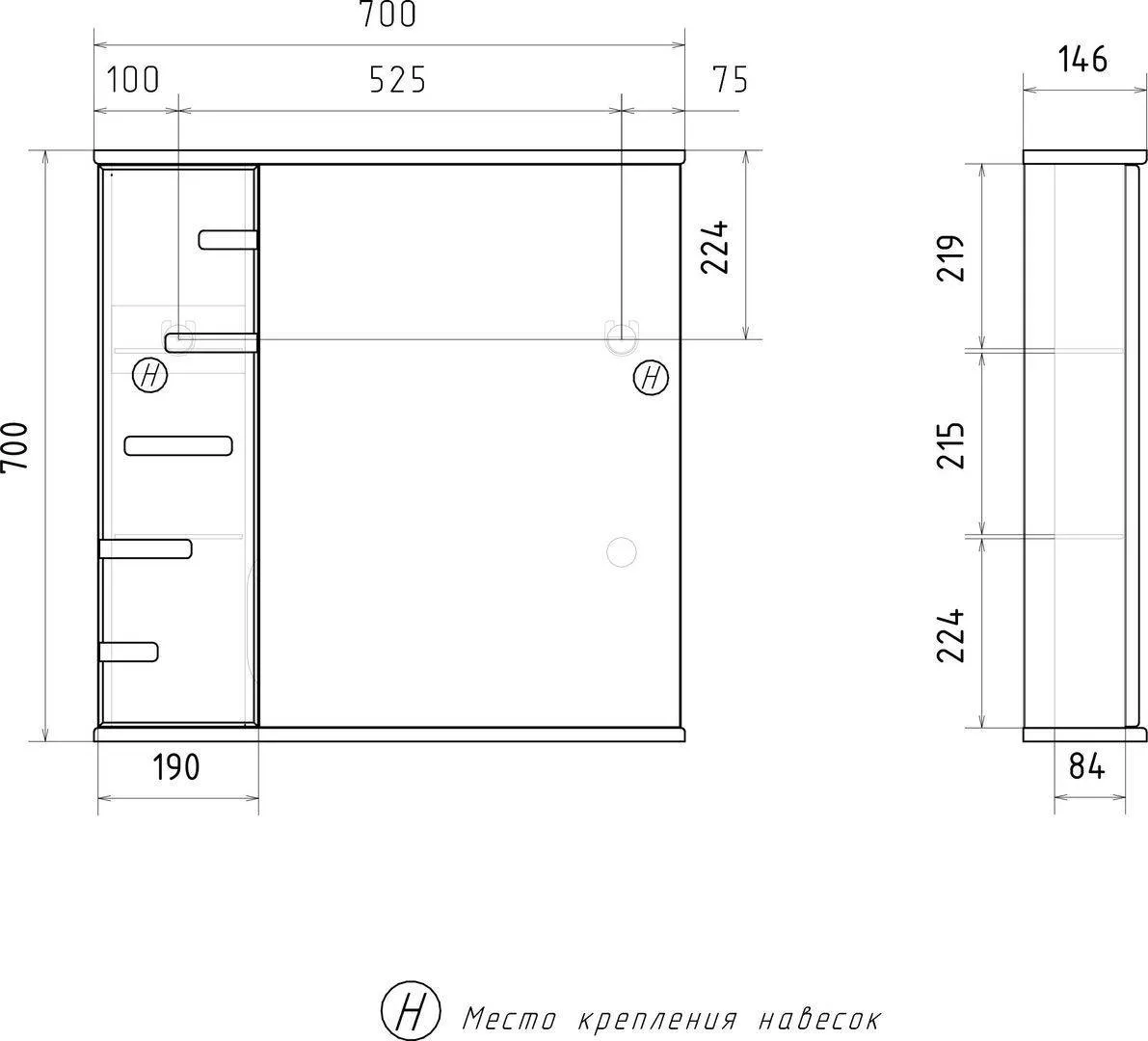 | Тип зеркала | Зеркало с полкой и шкафом |