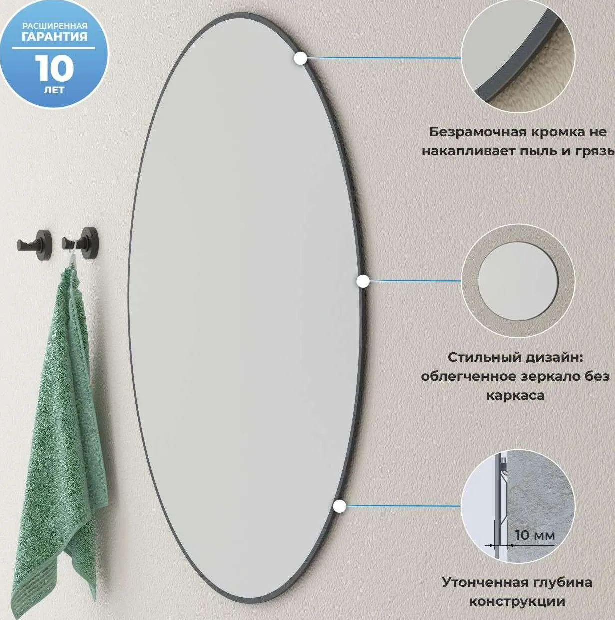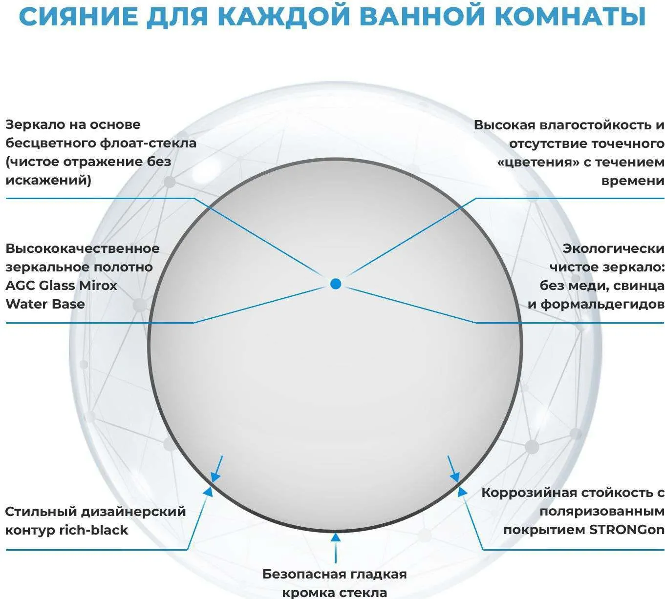 7 Rays' Spectrum — коллекция бестселлер от Wellsee, в которую включены стильные дизайнерские зеркала, придающие пространству дополнительную глубину. Зеркало с тонким черным контуром станет отличным комплиментом готовому интерьеру и безупречному вкусу владельца. В коллекцию входят актуальные формы и популярные размеры классических зеркал без подсветки и LED-зеркал, среди которых с легкостью можно найти идеальное решение для реализации любых дизайнерских идей. ЗЕРКАЛО ТРЕТЬЕГО ПОКОЛЕНИЯ: AGC GLASS MIROX 3G Безупречное японское стекло — результат непрерывного развития технологий, оно соответствует единой системе защиты от коррозии и отсутствию точечного «цветения» с течением времени. Периметр зеркального полотна декорирован тонким черным контуром, при облучении которого отверждаемые УФ-чернила значительно повышают прочность сцепления. Экологически чистое зеркало на основе бесцветного флоат-стекла меняет визуальное восприятие пространства и смещает акценты, делая бледное ярким, а обычное – уникальным! Непревзойденное преимущество и безграничный простор для помещений со светлым интерьером. ЛУЧШИЕ КОНСТРУКТОРСКИЕ РЕШЕНИЯ ДЛЯ ВАШЕГО ДОМА Зеркало без подсветки великолепно дополнит помещение с многоуровневым освещением. Оно концентрирует внимание и не отвлекает от главного – идеального отражения, а черный матовый контур деликатно обрамляет изделие. Благодаря отсутствию рамы зеркало идеально прилегает к стене и практически сливается с ее поверхностью. Заводские металлические крепления надежно удерживают всю конструкцию на крюк-дюбелях с антикоррозийным покрытием. Легкий монтаж занимает несколько минут, а навесить изделие можно самостоятельно, не прибегая к помощи профессионалов. ЕДИНАЯ УМЫВАЛЬНАЯ ЗОНА С WELLSEE Зеркало 7 Rays' Spectrum идеально дополнит монохромные помещения и ванные комнаты с ярким дизайном. Создать гармоничную композицию в едином стиле помогут оригинальные смесители, надежные сифоны, функциональные донные клапаны и угловые вентили из коллекций Wellsee, которые отлично сочетаются и прекрасно дополняют друг друга. Придать завершенность и расставить акценты можно при помощи лаконичных столешниц и элегантных современных раковин Wellsee, а также стильных аксессуаров Finishing Touch. НАДЕЖНАЯ УПАКОВКА Каждое зеркало тщательно упаковано. Многослойная упаковка из плотного гофрированного картона и пузырчатой пленки защищает все элементы от трещин и сколов, а специальная бумага – от появления микроцарапин на зеркальном полотне. На углы установлена дополнительная защита, а кромка зеркала со всех сторон укрыта вспененным полиэтиленом. Бережное отношение во время транспортировки, погрузки и разгрузки помогает сохранить геометрию конструкции, а каждую позицию из заказа доставить в первозданном виде. В комплект входит инструкция и крепежный комплект. Выбирайте оптимальный размер зеркала Wellsee и наслаждайтесь кристально чистым отражением каждый день!