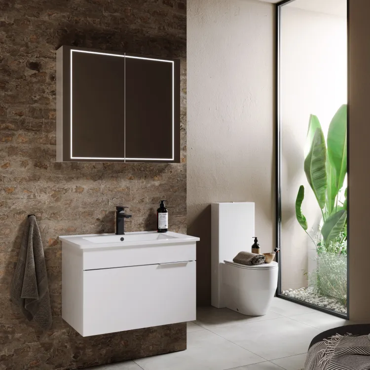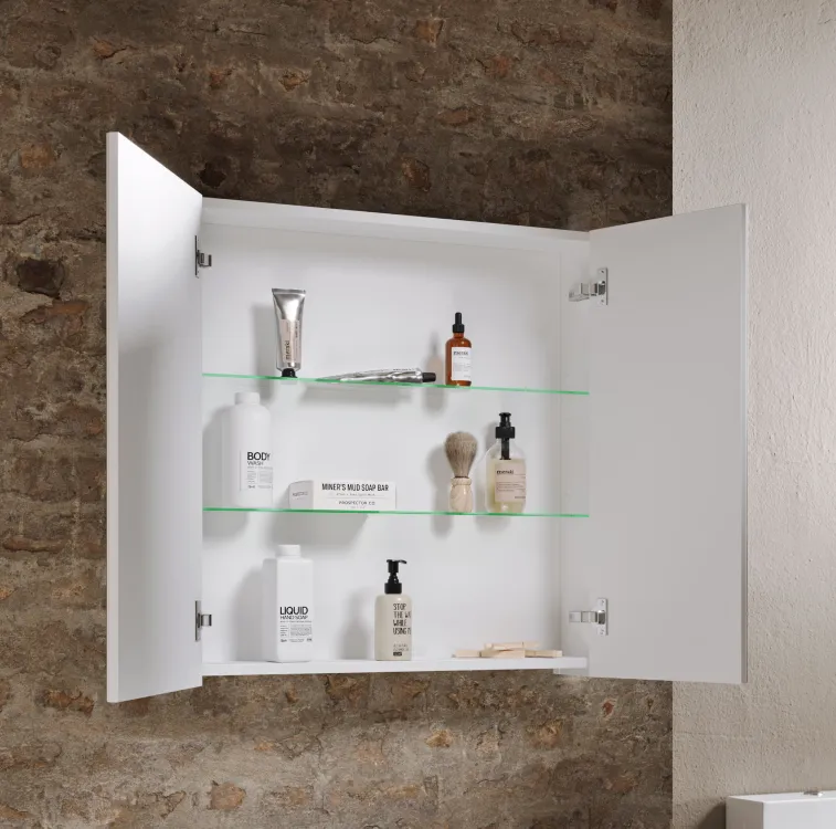Зеркальный шкаф со светодиодной подсветкой, сенсорным выключателем и регулятором освещенности.