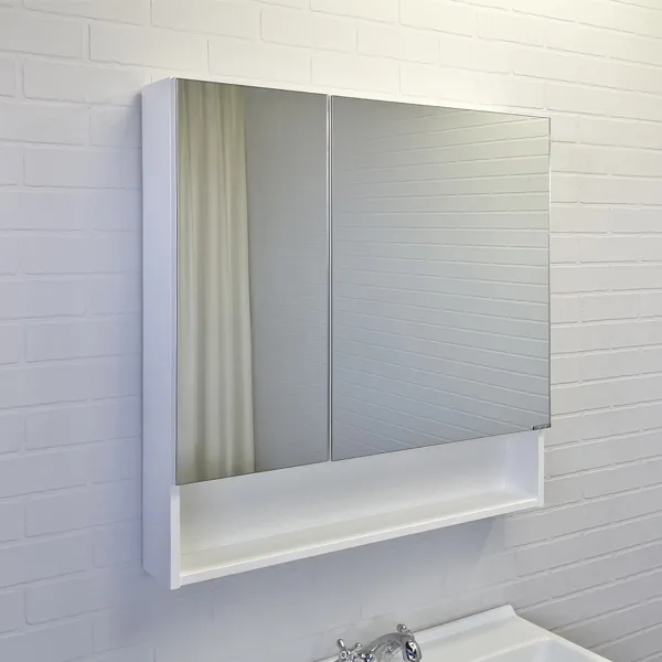 Створки оснащены петлями с плавным закрыванием. Высококачественное зеркальное полотно с амальгамой на основе серебра. Обе боковые створки зеркала открываются наружу. За широкой створкой две горизонтальные полки, за узкой одна. На нижней внешней полке можно расположить невысокие принадлежности для умывания. Название: Шкаф-зеркало Артикул: 00-00011198CF Цвет: белый глянец Габариты (ШхВхГ): 800*800*135 мм. Инструкция для мебели для ванных комнат COMFORTY