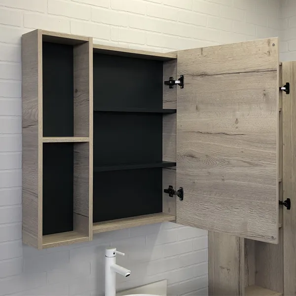 Название: Шкаф-зеркало Коллекция: Порто 75 Артикул: 00-00009234CF Цвет: Дуб дымчатый Габариты (ШхВхГ): 715*800*145 мм. Высококачественное зеркальное полотно с амальгамой на основе серебра. Створка оснащена петлями с плавным закрыванием. Петли у створки снаружи. За зеркальной створкой одна горизонтальная полка, в пространстве открытого хранения - две. Зеркало-шкаф универсально - может быть подвешено в правом и левом варианте. Инструкция для мебели для ванных комнат COMFORTY