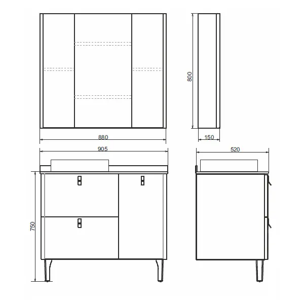 Название: Зеркало шкаф Артикул: Сорренто 90 Варианты цвета: Светло-серый Материал корпуса: МДФ Габариты (ШхВхГ): 880*800*150 мм Зеркальное высококачественное полотно с амальгамой на основе серебра. Створки мебельного элемента оснащена петлями с функцией плавного закрывания. За центральной створкой две горизонтальные полки, за боковыми - по одной полке. Инструкция для мебели для ванных комнат COMFORTY