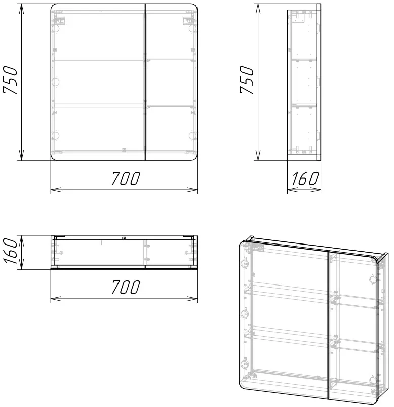 Зеркало-шкаф Grossman Талис 70x75 правая с подсветкой