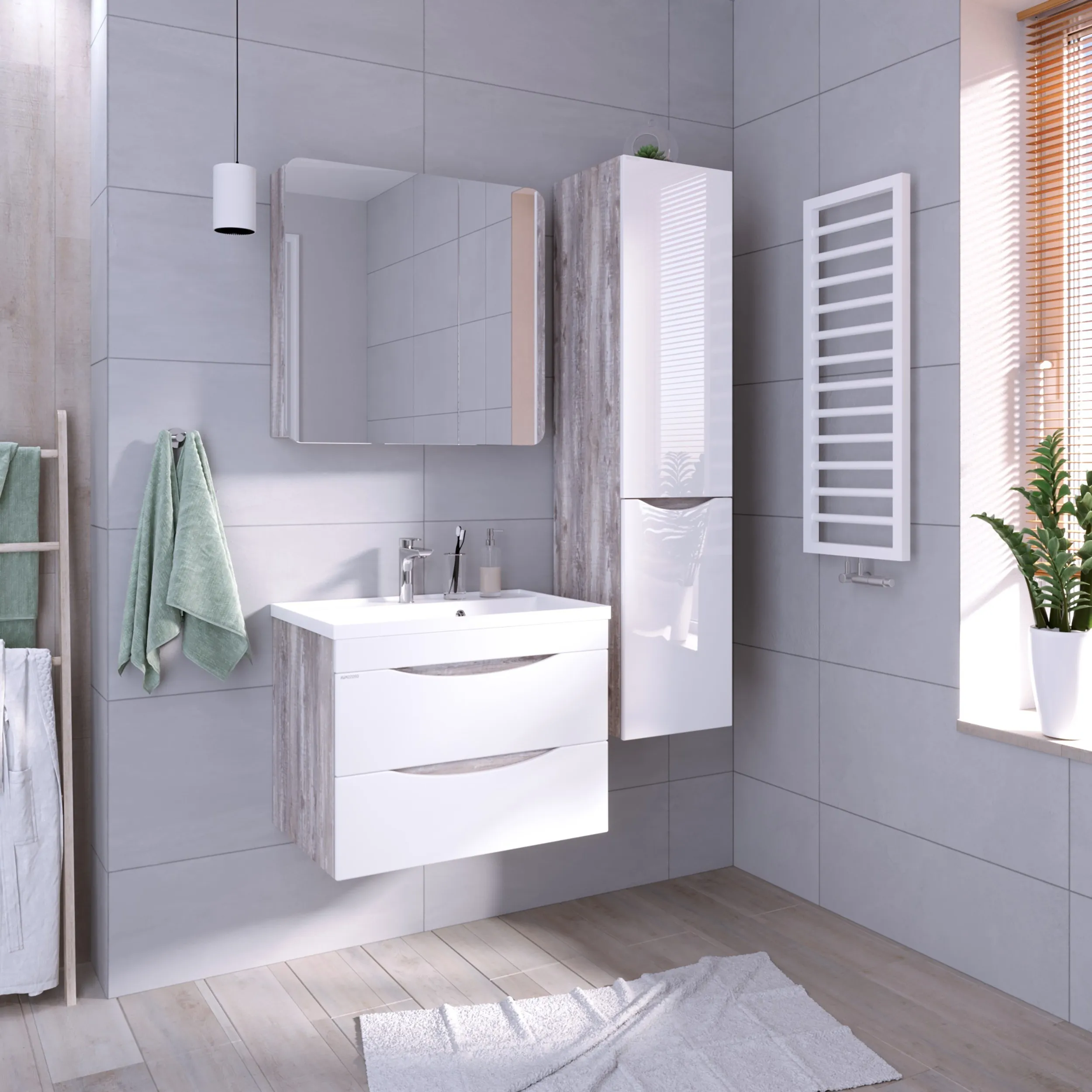 Зеркало-шкаф Талис-70 см позволяет эффективно использовать пространство ванной комнаты, обеспечивая быстрый доступ к самым необходимым предметам, при этом не создавая визуальный шум. Просторный шкаф с двумя распашными дверьми вмещает в себя два отсека. В левом отсеке две полки из ЛДСП, в правом две полки из стекла.. Корпус выполнен из влагостойкого ЛДСП в цвете бетон пайн. Дверца шкафа открывается за фасад и комплектуется петлями с доводчиком. Подвесы для крепления шкафа - в комплекте.